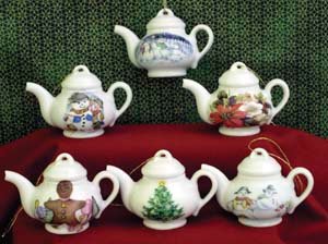 Christmas Teapot Ornament Set of 6