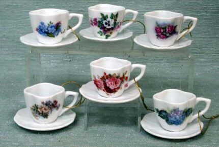 Assorted Floral Cup & Saucer Ornament Set of 6
